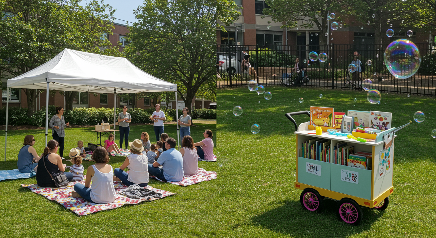 Oh the Library, is always there when you need it and so underappreciated!! There are several story hours at various branches of the library and when the weather is nice the good people at the South Philly branch at Broad and Morris Streets host a StoryJam starting at 10:30 every Tuesday at DiSilvestro playground behind the library. Featuring animated storytelling, sing-alongs, colorful toys, sensory experiences, and several bubble machines for good measure! libwww.freelibrary.org/calendar/event/86267